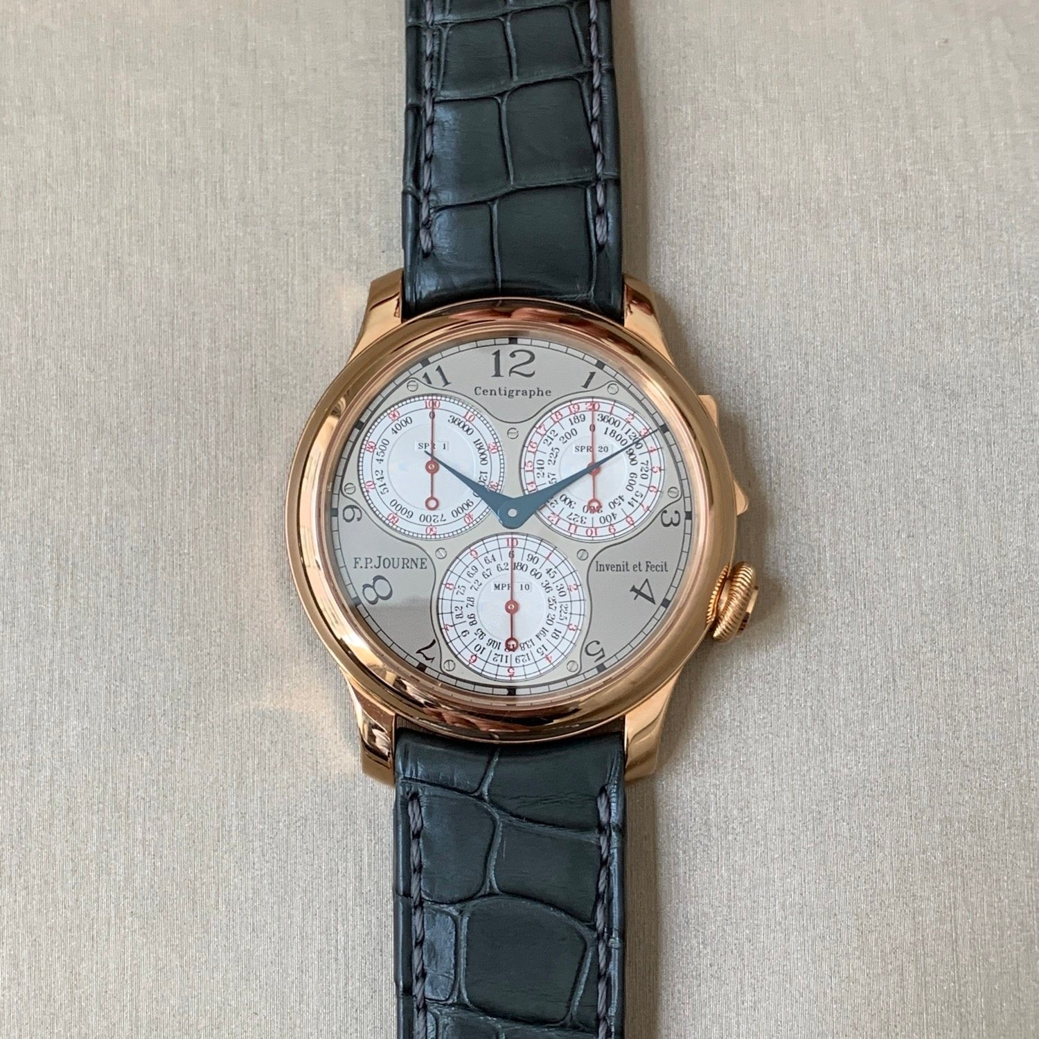 Across its 10-yr life span between 2008-2018, the Centigraphe has been produced in limited quantities in metals including rose gold and platinum, and a few special dial variants.