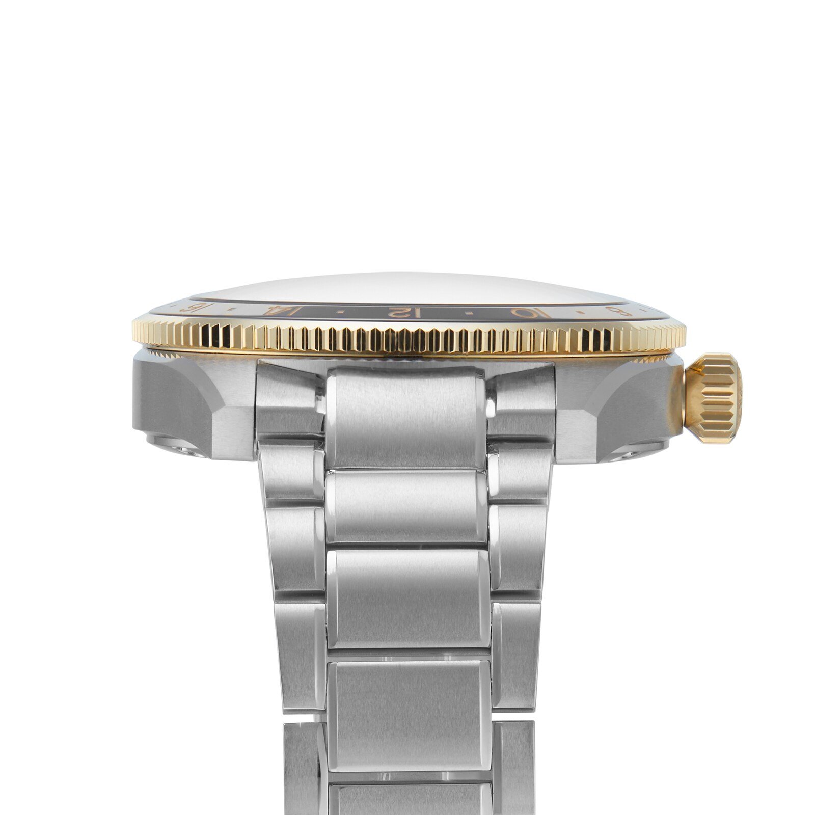 This watch features a robust 42mm round case crafted from stainless steel with an 18K yellow gold cap. Its striking anthracite dial is accentuated by gilt hands and applied Arabic numerals, ensuring clarity and elegance in every glance.