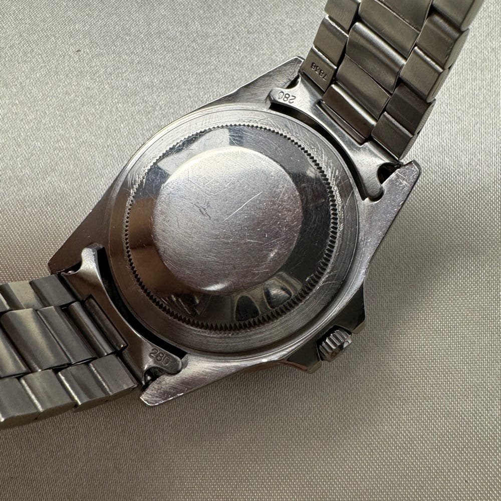 The vintage patina of the 1675’s bezel adds a rare character that enhances its appeal to collectors and watch enthusiasts. Paired with the aged tritium hour markers and hands, which have turned to a warm, creamy tone, the dial has a charming vintage aesthetic that makes every piece feel like a story in itself. Inside, the watch is powered by Rolex’s reliable caliber 1575 movement, ensuring precise timekeeping for those who still rely on this classic companion for international travel.